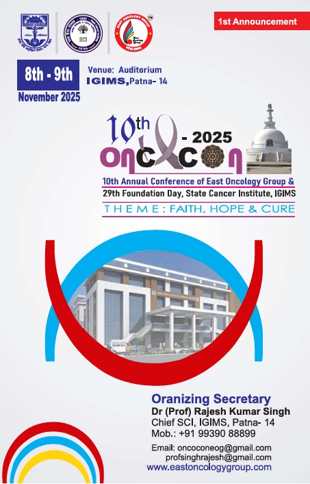 East Oncology Group Organize every year two days National conference every year i.e. ONCOCON. 7th National Conference organized successfully by this group. Every year we focus conference on different theme. In all conference many National and International Faculty participate in ONCOCON. We always focus on Faculty and interesting topic.